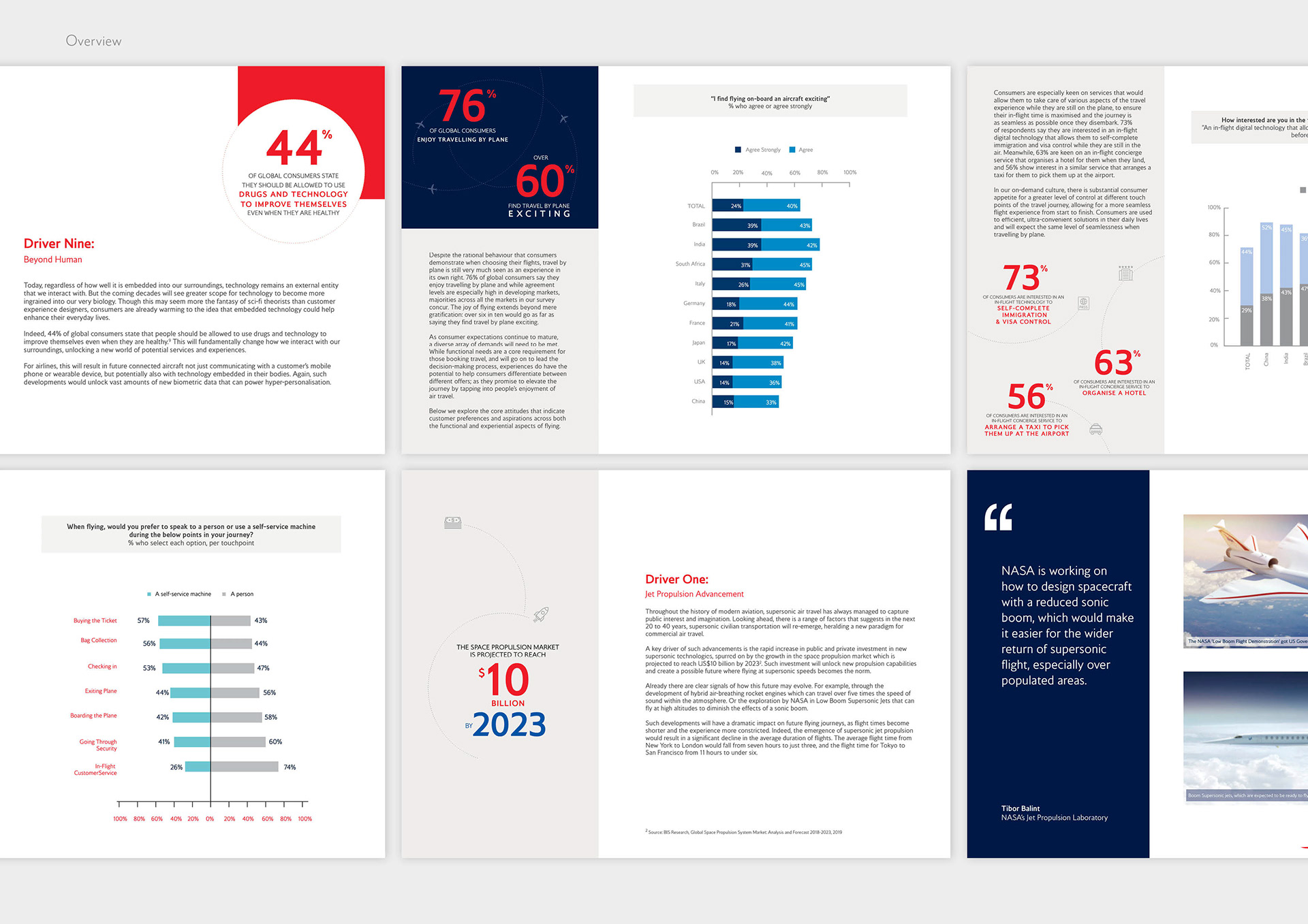I had the chance to work on this fun project of designing a report called "The Future of Flying" during my contract with Hogarth London for British Airways. The research had very interesting insights and the data was fun to work with. There was a very strict time limitation to come up with a design and implement it through the whole report but it came out quite nice in the end.